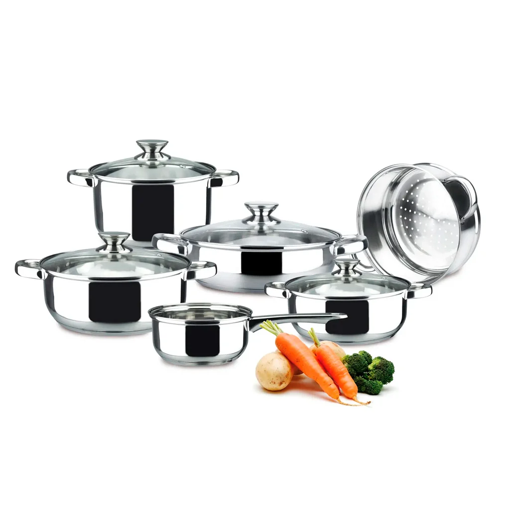 Disponible en 2 formatos: batería de 7 piezas, y batería de 10 piezas que incluye en su composición una cacerola de vapor.