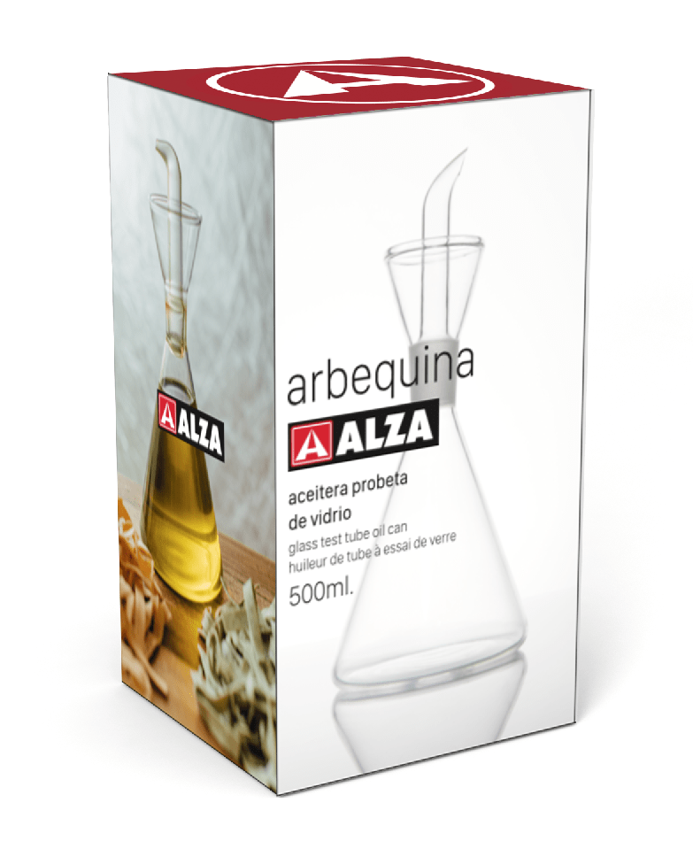 Fabricada íntegramente en vidrio. Totalmente transparente, identificamos el líquido y controlamos la cantidad.