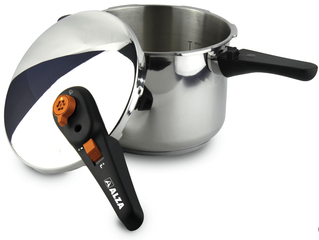 Olla a presión fabricada íntegramente en Acero Inoxidable 18/10 de alta calidad.