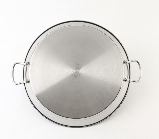 Clásica paellera valenciana fabricada íntegramente en Acero Inoxidable 18/10, mucho más resistente y duradera.