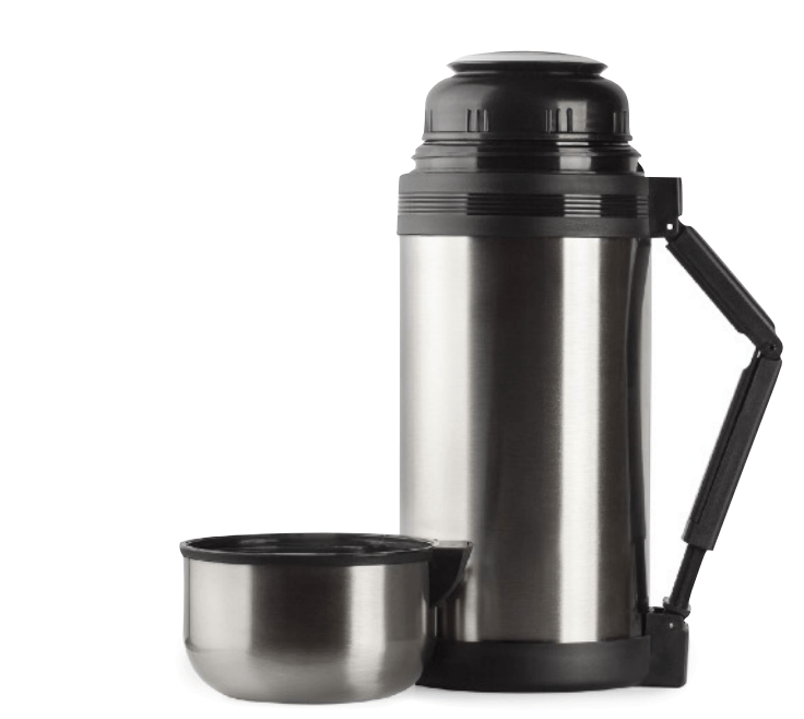 Termo provisto de doble apertura: boca ancha para sólidos y boca estrecha para líquidos, permitiendo una utilizacion polivante.